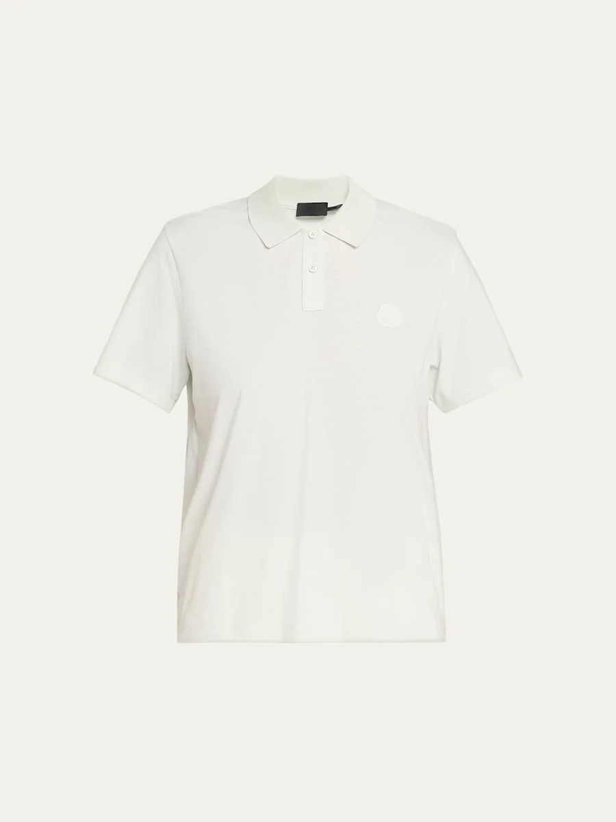 Moncler classic polo shirt detailed with a tonal embroidered logo patch Point collar; buttonplacket Short sleeves Classic fit Hem sits at the hip Pullover style Polyester/cotton Lining: Cotton Dry clean Imported This product contains perfluoroalkyl and polyfluoroalkyl substances (PFAS). For more information, please visit the manufacturer's website.SIZE amp; FITModel measurements: 5'10" tall Model is wearing a US size 4/Small
