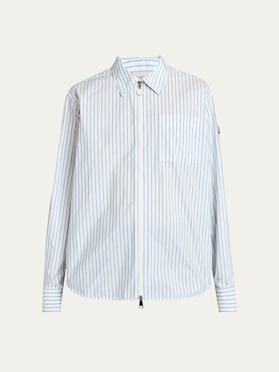 Moncler striped shirt enhanced with a twoway zipfront Point collar Long sleeves with button cuffs Embroidered logo patch at left sleeve Chest pocket Relaxed fit Rounded hem Nylon/polyamide Lining: Nylon Machine wash cold Imported