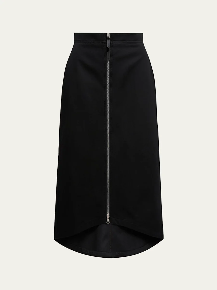 Crafted in cotton gabardine, this midi skirt from the Moncler Genius and Edward Enninful collaboration Collection offers a sleek silhouette with style and function. Highrise Skirt falls straight from hip to hem Highlow hem Exposed twoway zipfront Cotton Dry clean Imported