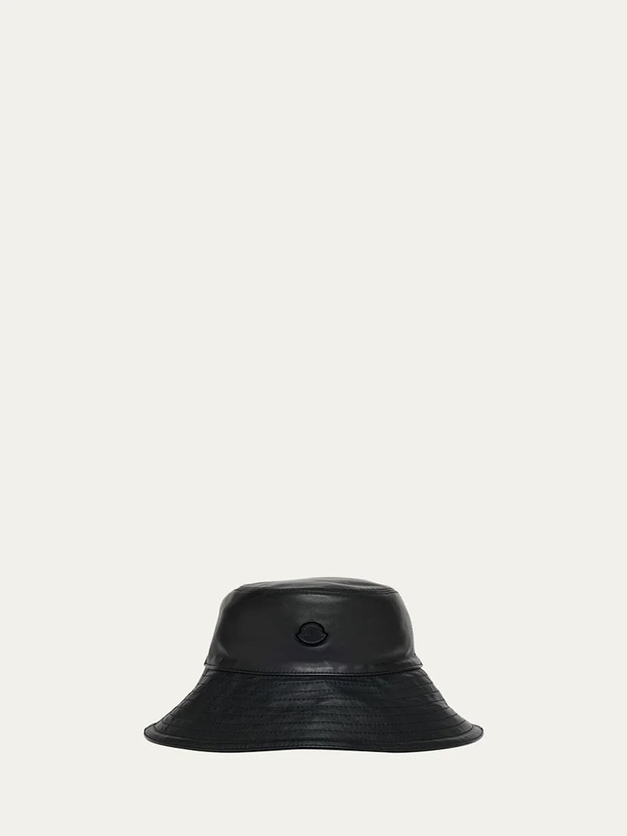 Sleek bucket hat from the Moncler Genius and Edward Enninful collaboration collection, crafted from luxurious calf leather. Features a signature logo patch on the front Flat crown Downturned brim with tonal stitching Leather/cotton Leather method dry cleaning Made in Italy