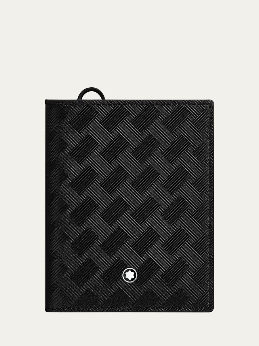 The Montblanc Extreme 3.0 compact wallet features 6 credit card slots and pockets for cash and receipts The embossed fullgrain cowhide leather featuring the Montblanc Extreme 3.0 motif lends an unmistakable style, alongside the black metal fittings A ring allows you to attach the wallet to a hook or neck strap to keep all your belongings close at hand (neck strap sold separately) Approx. 3.5"H x 3.5"L x 0.3"W Lining: Fabric Spot clean Made in Italy