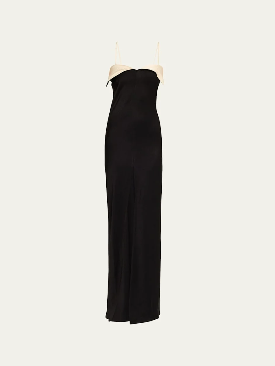 Crafted from crisp satin, the "Nelma" gown by Nanushka showcases a folded neckline, creating a fluid twotone silhouette with an elevated look and feel. Sweetheart neckline Adjustable straps Column silhouette Center front slit Invisible side zip Triacetate/polyester Dry clean or machine wash warm Imported