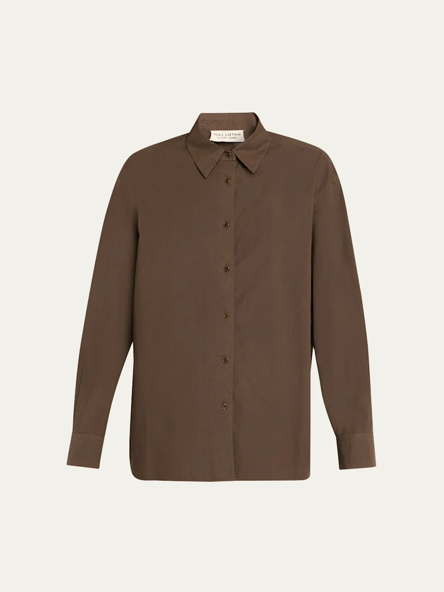 Crafted from crisp cotton poplin, the "Amante" shirt from Nili Lotan is tailored with a slightly oversized silhouette Point collar; button front Long sleeves; button cuffs Yoked back; double pleat Oversized fit Shirttail hem Cotton Made in USA