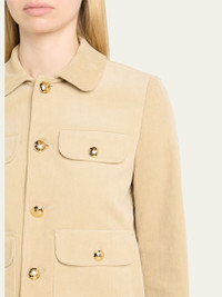 Nili Lotan "Chamonix" corduroy jacket finished with golden embossed-dome buttons Spread collar; button front Long sleeves; button cuffs Four front buttoned flap pockets Relaxed fit Mid-length Cotton/polyurethane Spot clean Made in USA Online Inquiries: BGS21_BA4QW| Store Inquiries: #5035927