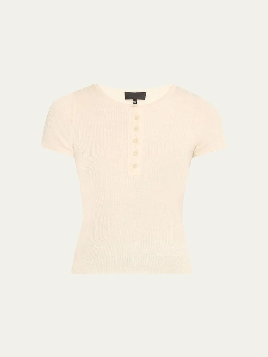 Nili Lotan "Francene" henley sweater V-Neck Short Sleeve Silk Made in USA from imported materials Online Inquiries: BGS21_B9RWM| Store Inquiries: #4952904