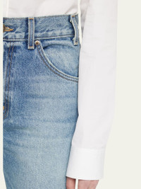 Nili Lotan "Joan" jeans in a classic straightleg styling High rise Button/zip fly; belt loops Fivepocket style Straight legs Full length Relaxed fit Cotton Made in the USA