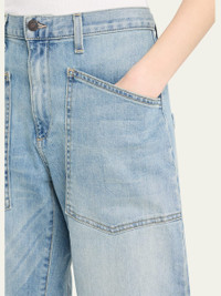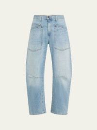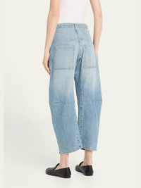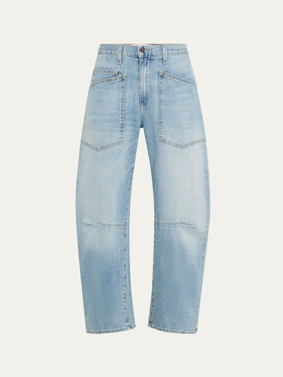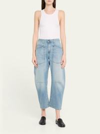Nili Lotan "Shon" jeans with seam detail at knees Mid rise Five-pocket style Curved silhouette Cropped at the ankle Button/zip fly; belt loops Cotton/polyurethane Hand wash Made in USA Model is 5'10"/177cm. Online Inquiries: BGS21_B8VSE| Store Inquiries: #4665497