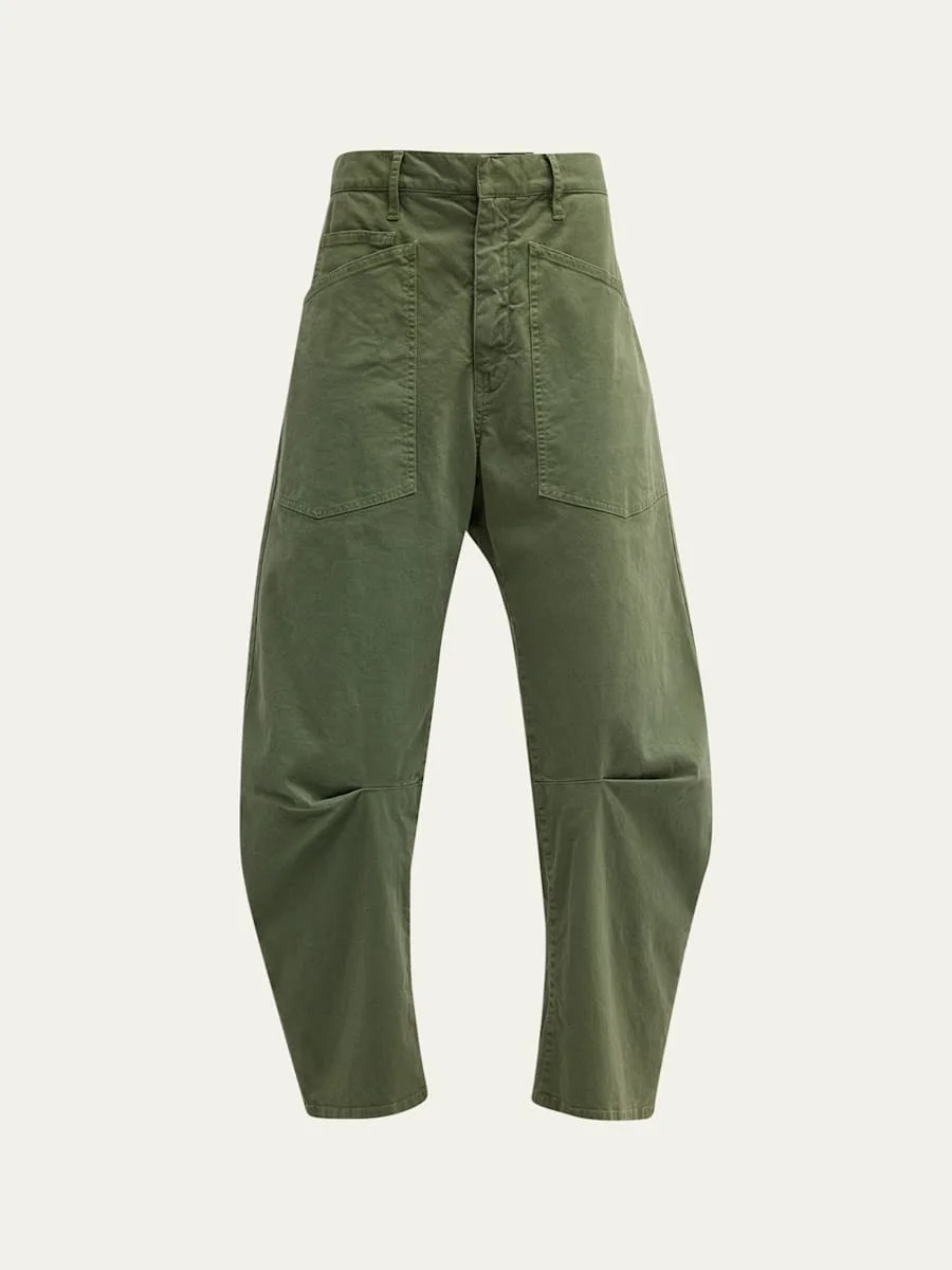 Nili Lotan "Shon" stretch twill pants. Mid rise. Front patch pockets; dropped back pockets. Curved silhouette. Cropped length. Hook-and-bar/zip fly; belt loops. Cotton/spandex. Made in USA. Model is 5'10"/177cm. Online Inquiries: BGS21_B65Z5| Store Inquiries: #4031772