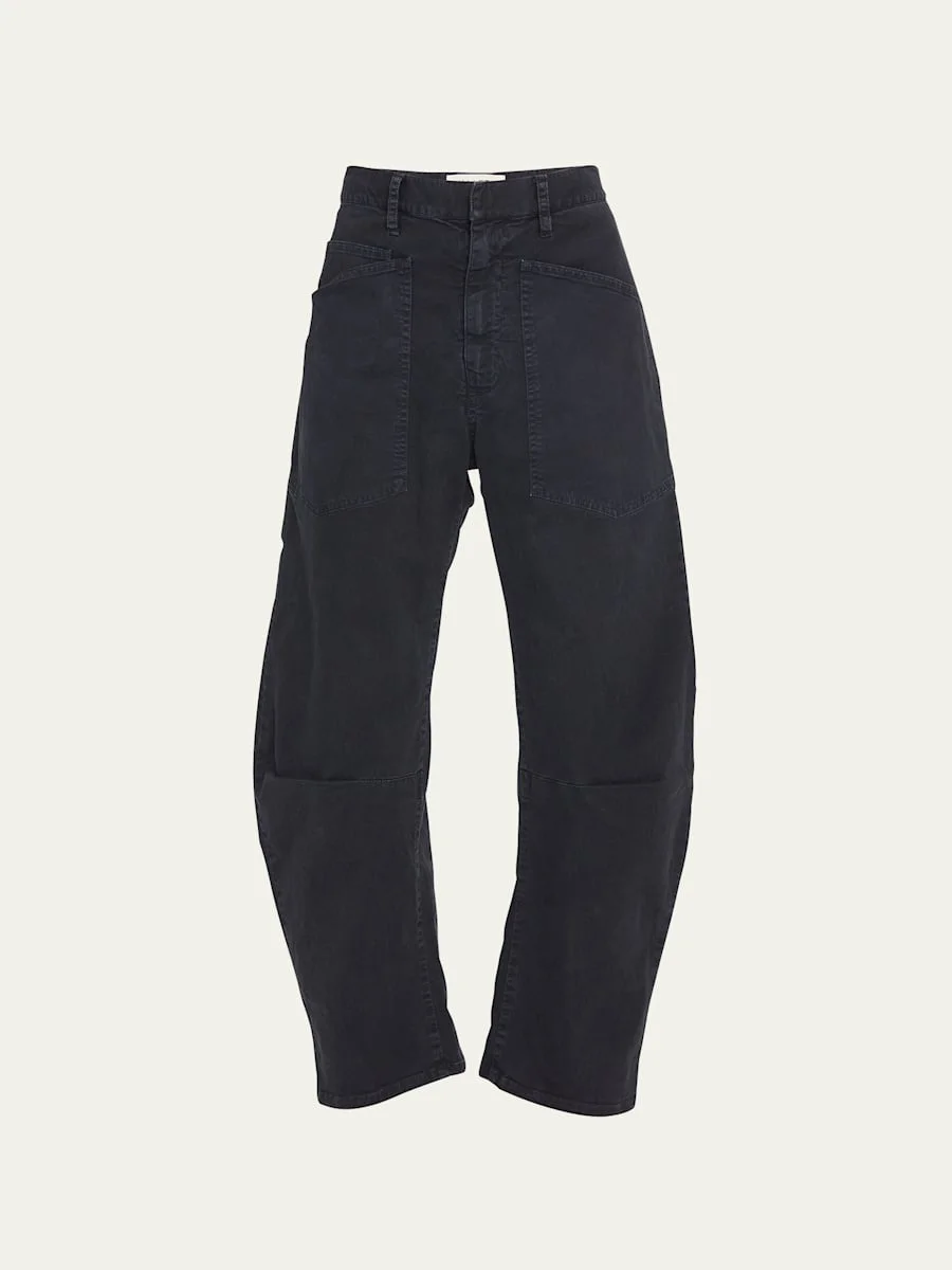 Nili Lotan "Shon" stretch twill pants. Mid rise. Front patch pockets; dropped back pockets. Curved silhouette. Cropped length. Hook-and-bar/zip fly; belt loops. Cotton/spandex. Made in USA. Model is 5'10"/177cm. Online Inquiries: BGS21_B65Z5| Store Inquiries: #4031772