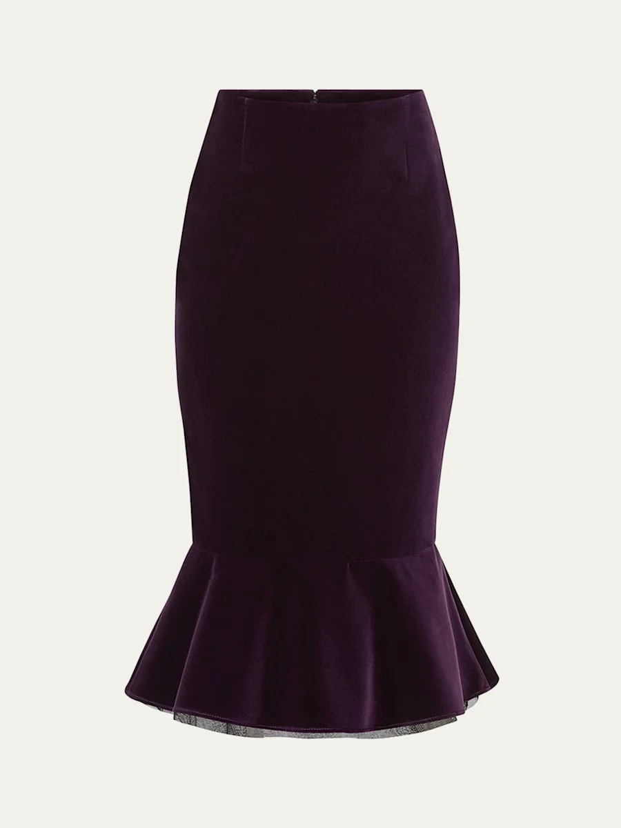 Velvet Ruffle Midi Skirt