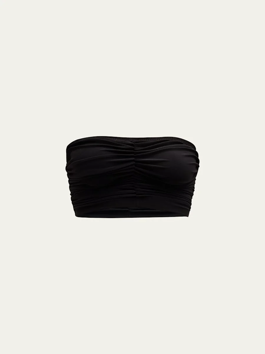 Norma Kamali bikini top with ruching. Bandeau neckline. Pullover style. Polyester/spandex. Hand wash. Imported. Bottoms sold separately. Online Inquiries: BGS21_T09W9| Store Inquiries: #3389690