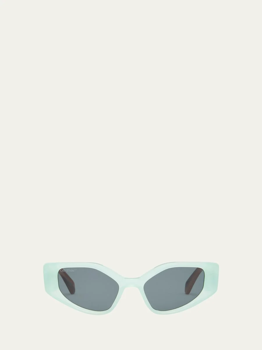 OffWhite "Memphis" beveled cateye sunglasses in acetate Solid lenses; logo on corner Saddle nose bridge Logo on temples Wide, tapered arms 100% UVA/UVB protection Made in Italy