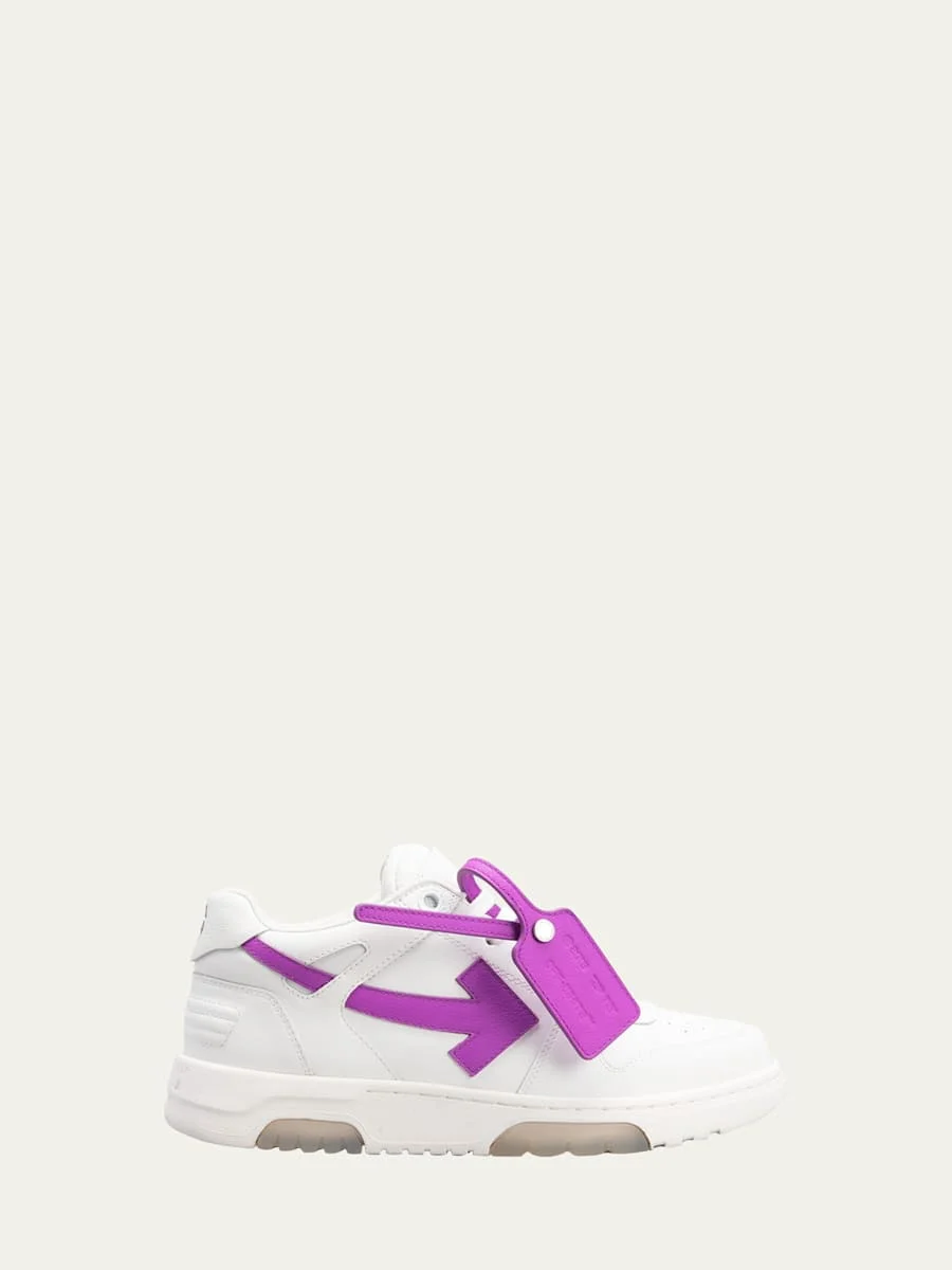 OffWhite "Out of Office" sneakers in leather Flat heel Perforated round toe Laceup vamp Signature arrow applique on sides Signature leather tag on sides Graphic print on backstay Rubber outsole Made in Italy