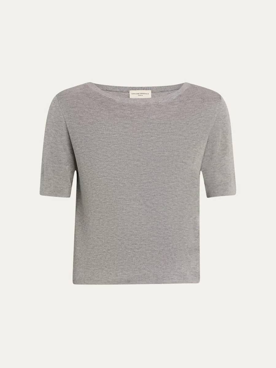 Officine Generale "Edmee" ribbed wool-blend tee Crew neckline Short sleeves Easy fit Hem sits at the hip Pullover style Lyocell/wool Machine wash Imported Online Inquiries: BGS21_T6WL8| Store Inquiries: #5053984