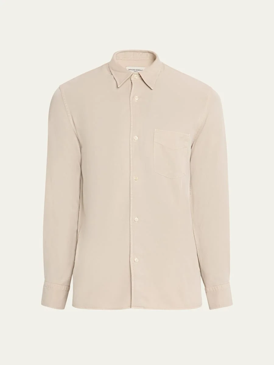 Officine Generale "Guido" solid shirt detailed with contrast stitching Shirt collar; button front Long sleeves; button cuffs Chest patch pocket Yoked back Classic fit Lyocell Machine wash Imported Online Inquiries: BGS21_NDMC7| Store Inquiries: #5047988