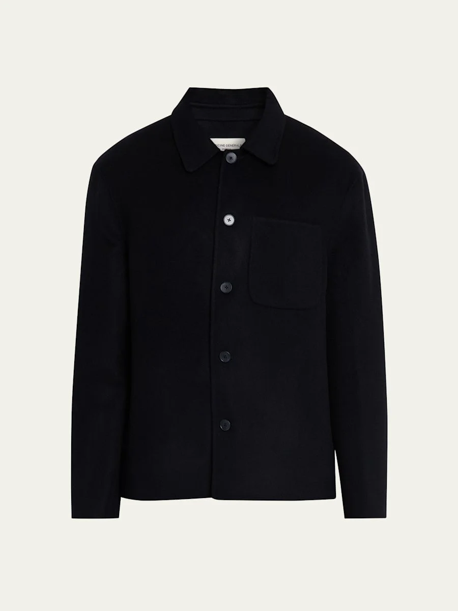 Officine Generale "Hamilton" double wool overshirt Shirt collar; button front Long sleeves Single chest patch pocket Relaxed fit Hip length Wool Unlined Dry clean Imported Online Inquiries: BGS21_NDMC4| Store Inquiries: #5047985