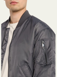 Officine Generale "Javier" padded bomber jacket constructed of water-repellent nylon Ribbed collar Long sleeves Zip pocket on left sleeve Two angled front welt pockets Ribbed cuffs and hem Loose fit Two-way zip front closure Nylon/polyamide Dry clean only Imported Online Inquiries: BGS21_NDSTK| Store Inquiries: #5078747