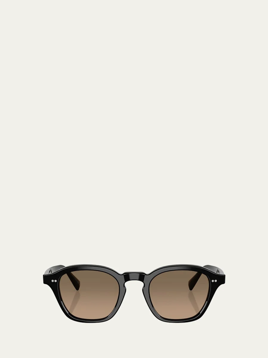 Oliver Peoples square sunglasses in acetate Eye/bridge/temple (in mm): 48/22/145 Solid color lenses Keyhole nose bridge Wide, tapered arms Can be fitted with prescription lenses 100% UVA/UVB protection Made in Italy