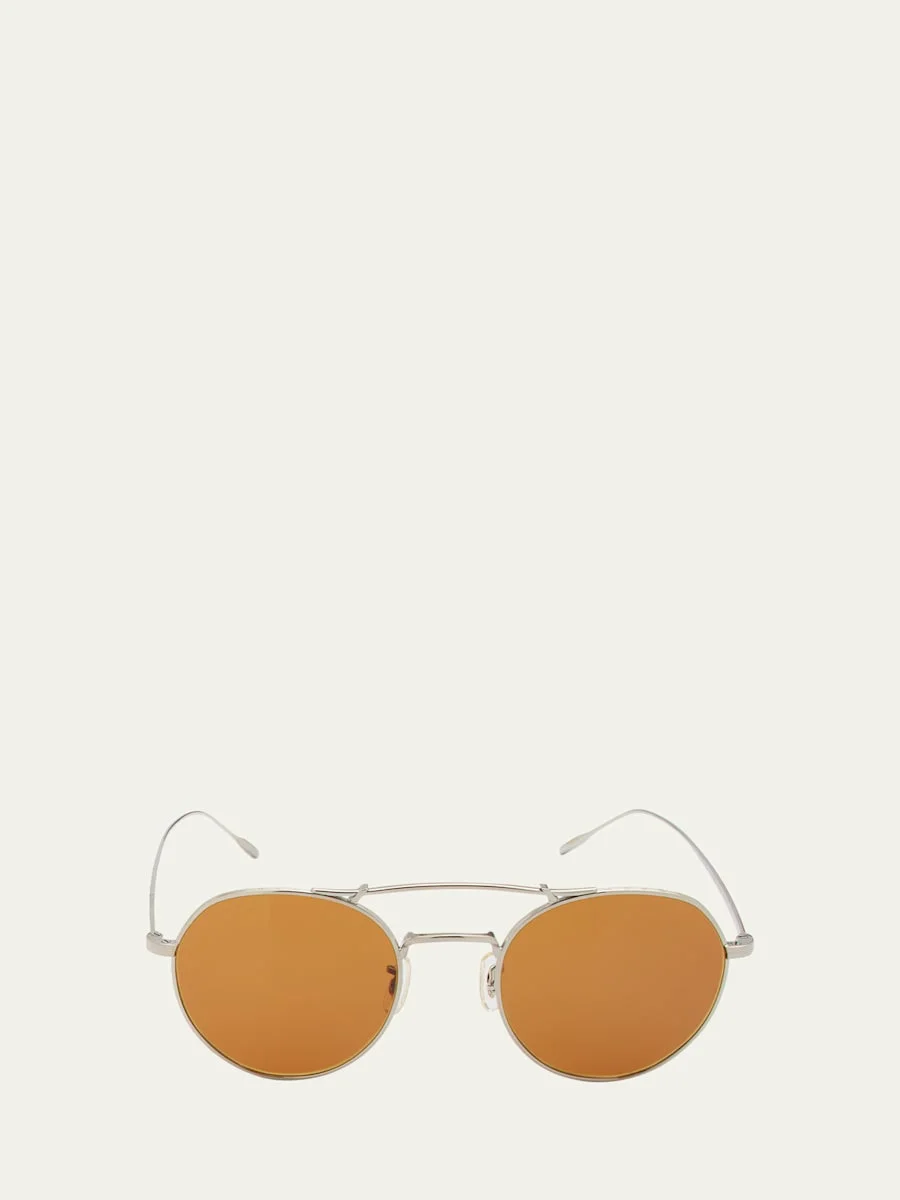 Oliver Peoples "Reymont" round sunglasses features double nose bridge Solid-colored lenses Thin, full-rim frames Adjustable nose pads Thin, tapered arms; curved temple tips Lightweight titanium frames/glass 100% UVA/UVB protection Made in Italy Online Inquiries: BGS21_D4GK7| Store Inquiries: #4429049