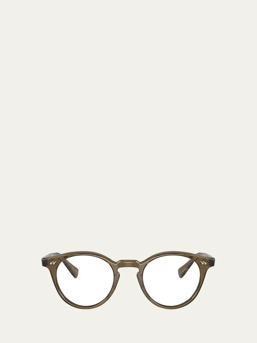 Oliver Peoples round optical glasses in acetate Lens/bridge/temple (in mm): 48 x 22 x 145mm Keyhole nose bridge Thin, tapered arms Made in Italy Proposition 65 warning for California residents Online Inquiries: BGS21_D5108| Store Inquiries: #4874349