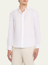 Men's Giles Linen Applique Tailored-Fit Sport Shirt