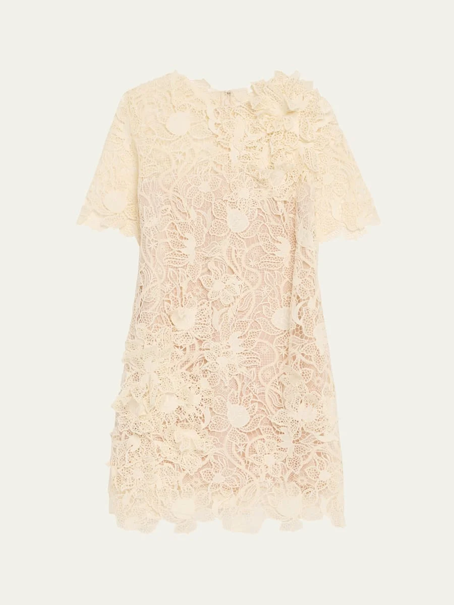 Botanical Guipure Short-Sleeve Mini Dress