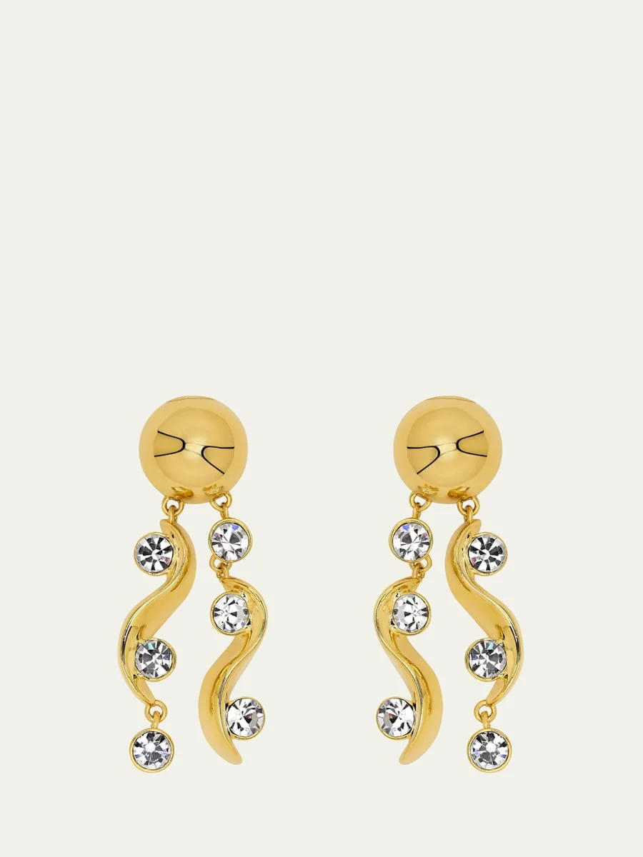 Wavy dangles hang from a polished dome on these Oscar de la Renta earrings. Round glass crystals add shine to the twin waves. Approx. 2.5" length 24-karat gold-plated brass Clip-on backs Made in Italy Online Inquiries: BGS21_Y7NBY| Store Inquiries: #5039239