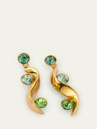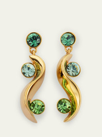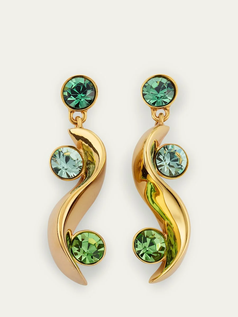 Wavy dangles hang from these Oscar de la Renta earrings. Round glass crystals add shine to the earlobes and waves. Approx. 2" length 24karat goldplated brass For pierced ears Made in Italy