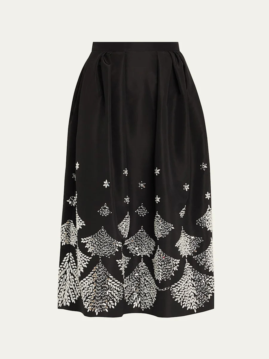 Oscar de la Renta party skirt finished with pleated gathering and mirrored fern embroidery High waist Full length A-line silhouette Back zip Silk Dry clean Made in Italy Online Inquiries: BGS21_BABA8| Store Inquiries: #5072318
