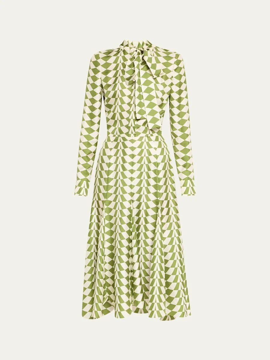 Geo Silk Twill Long-Sleeve Midi Shirtdress