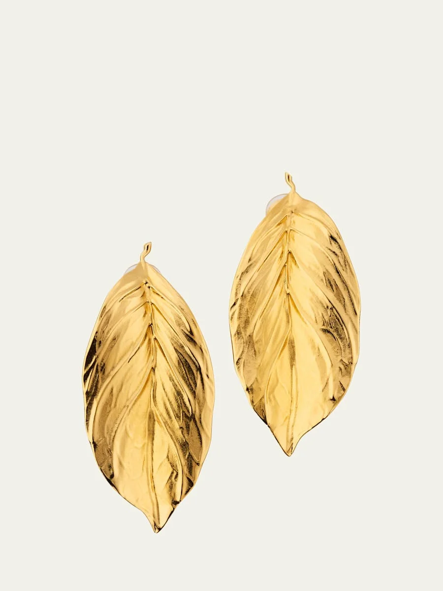 Oscar de la Renta leafshaped statement earrings Approx. 2.8"L 24karat goldplated brass Clipon backs Made in Italy