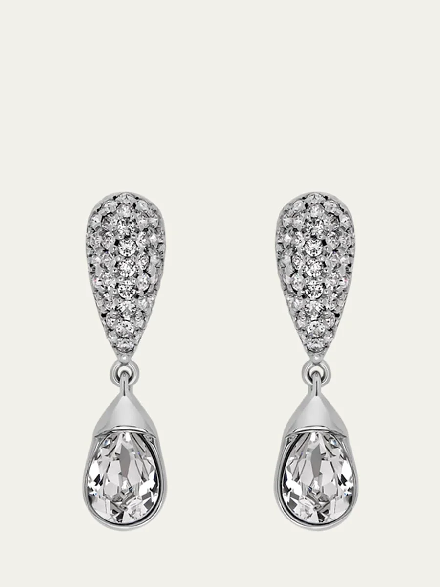 Oscar de la Renta drop earrings Approx. 1.9"L 24-karat white gold-plated brass and bronze Pave-set glass crystals and crystal drops For pierced ears Made in Italy Online Inquiries: BGS21_Y7G85| Store Inquiries: #4995089