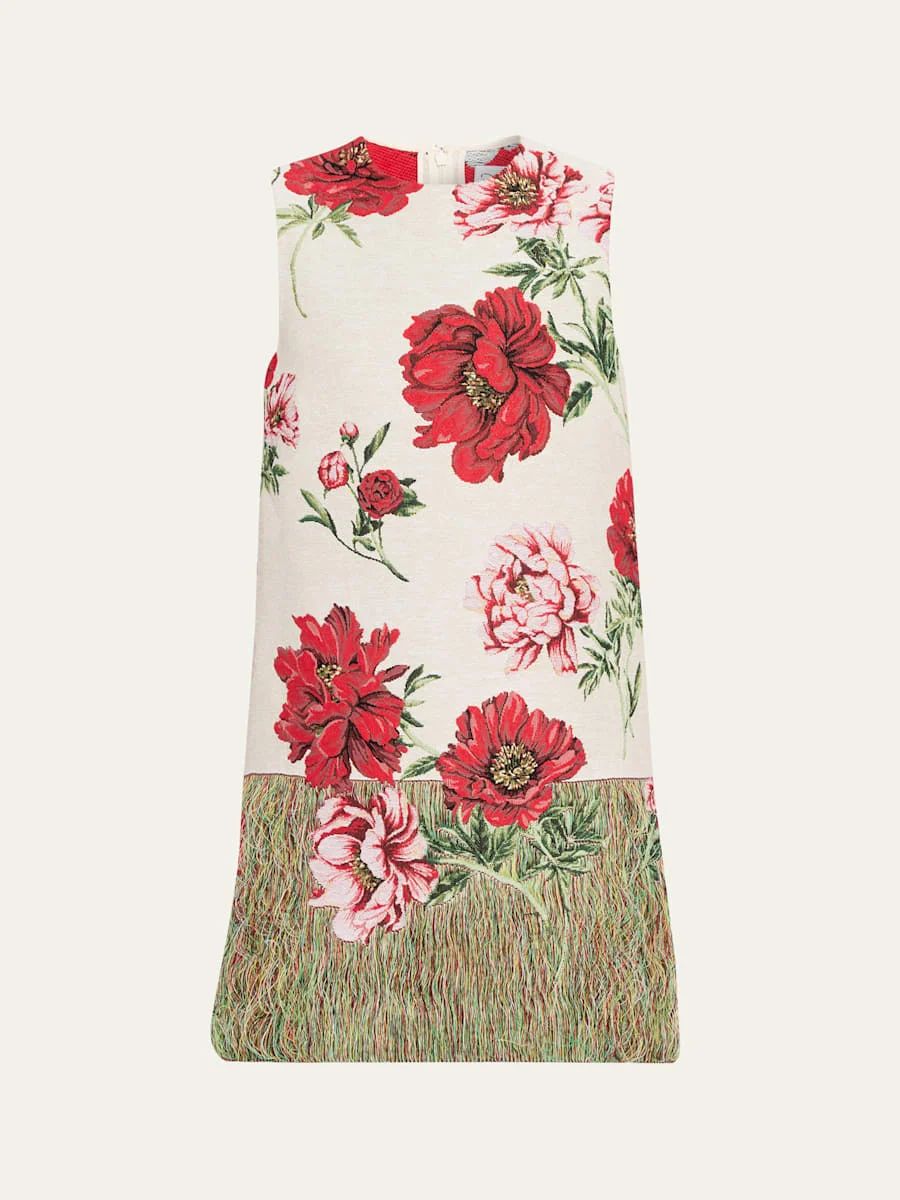 Peony Unraveled Jacquard Sleeveless Mini Day Dress