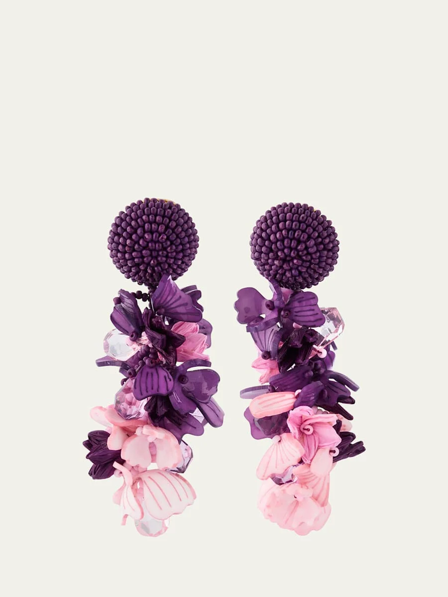 Oscar de la Renta beaded statement earrings with cascading flowers Approx. 3.1"L 24-karat gold-plated brass Acrylic and glass beads Clip-on backs Imported Online Inquiries: BGS21_Y7G8H| Store Inquiries: #4995230