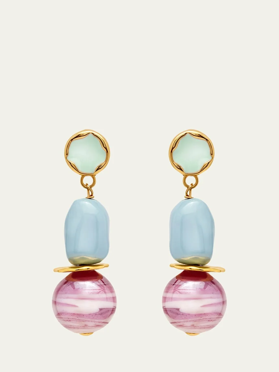 Oscar de la Renta adds a seainspired theme to these pastelcolored multistone drop earrings. Approx. 2.36" length x 0.6" width Shiny goldtone brass Resin stones Enamel Clipon backs Made in Italy