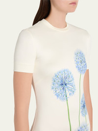 Oscar de la Renta dress is crafted of a viscose jersey adorned with an allium flower print on the front Oscar de la Renta’s Pre-Spring 2026 collection celebrates the vibrancy of a garden in full bloom, inspired by creative director Laura Kim’s own garden, bringing each piece to life on and off the runway High neckline Short sleeves Slim, column silhouette Full length Center-back slit hem Invisible back zip Viscose/elastane Unlined Dry clean Made in Italy Online Inquiries: BGS21_BB2L7| Store Inquiries: #5456928