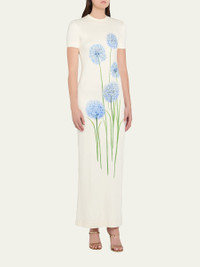 Short-Sleeve Allium Print Jersey Maxi Dress