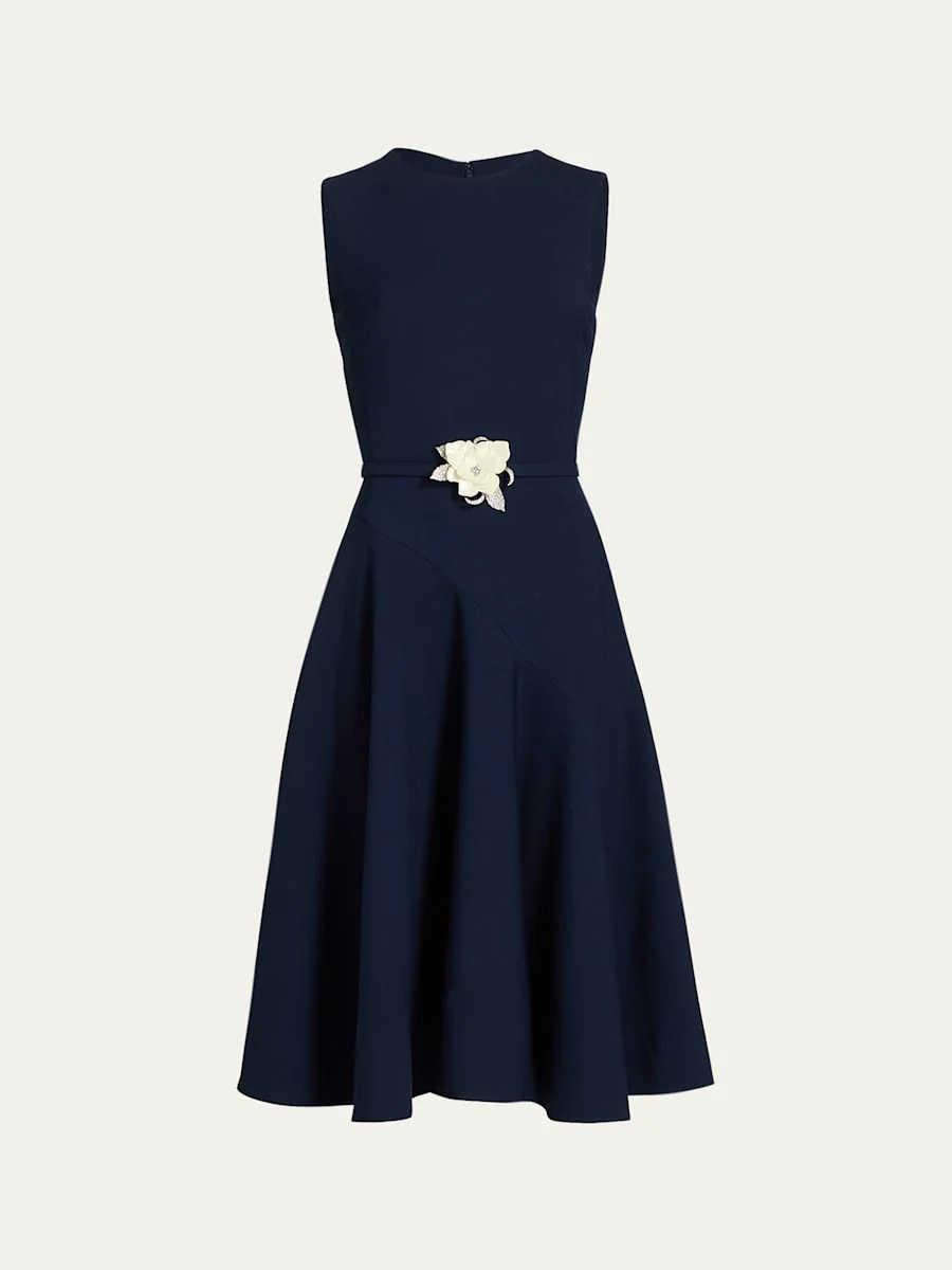 Oscar de la Renta dress is tailored in a stretch wool crepe, adorned with a crystal flower embellished self belt Oscar de la Renta’s Pre-Spring 2026 collection celebrates the vibrancy of a garden in full bloom, inspired by creative director Laura Kim’s own garden, bringing each piece to life on and off the runway Round neckline Sleeveless A-line silhouette Hem falls below the knee Invisible back zip Virgin wool/elastane/nylon/polyamide Unlined Dry clean Made in Italy Online Inquiries: BGS21_BB2L2| Store Inquiries: #5456919