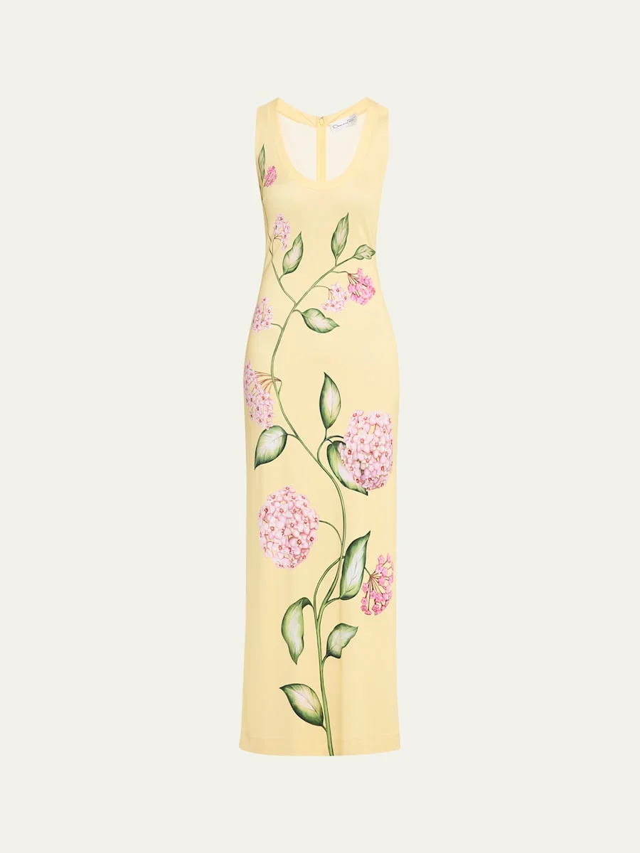 Sleeveless Porcelain Flowers Jersey Maxi Dress