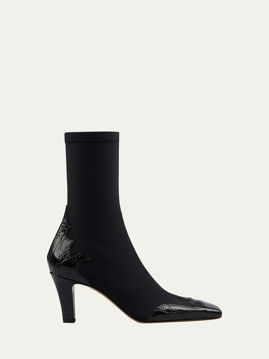 Paris Texas "Belle" stretch fabric and crocodileembossed leather western booties 3.00 in / 75 mm covered stiletto heel Square toe Pullon style Leather outsole Lining: Goat leather Made in Italy