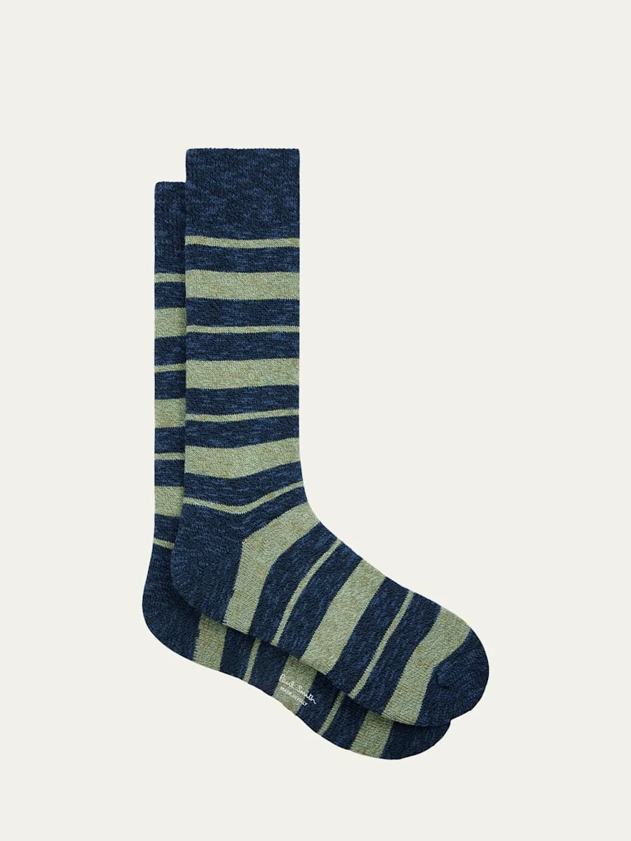 Paul Smith melange crew socks defined by a "Kenny" multistripe pattern Ribbed cuffs to prevent slipping Reinforced toe and heel Cotton/nylon/elastane Made in Italy