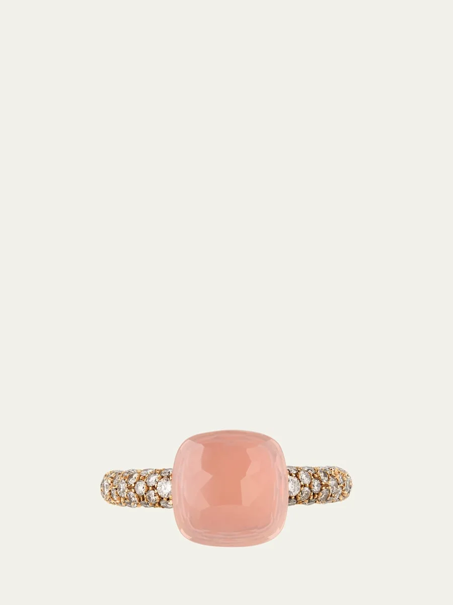 18K Gold Nudo Classic Rose Quartz Diamond Ring