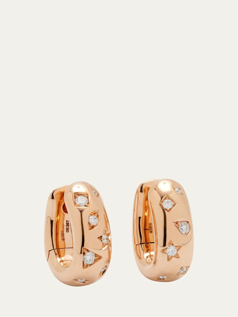 Pomellato earrings Shiny 18-karat rose gold 13 round white diamonds Star, triangle, and square settings Total diamond carat weight: 0.40 Hinge backs For pierced ears Made in Italy Online Inquiries: BGS21_PEG9N| Store Inquiries: #4444903
