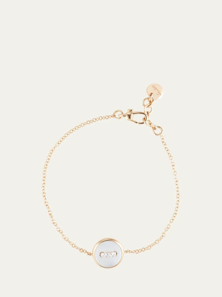 Pomellato bracelet Pom Pom Dot Collection Polished 18-karat rose gold One white mother-of-pearl; 1.1 total carat weight One gray mother-of-pearl; 1.1 total carat weight Ten white diamonds; 0.03 total carat weight Adjustable length Lobster clasp Made in Italy Online Inquiries: BGS21_PKRPB| Store Inquiries: #4787333