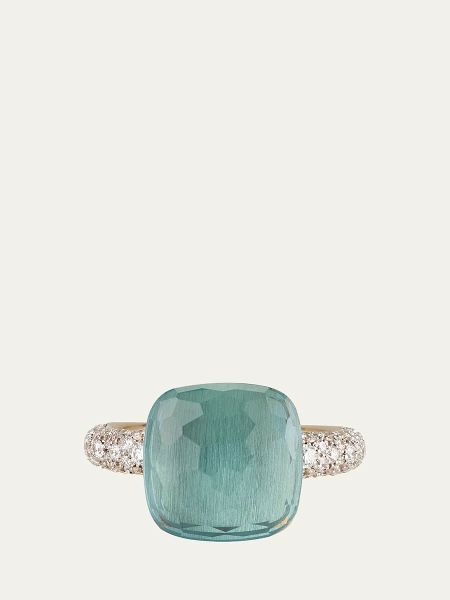 Pomellato ring Polished 18-karat white gold Center cushion-cut blue topaz 1.50 total topaz carat weight Pave-set white diamond band 0.70 total diamond carat weight Made in Italy Online Inquiries: BGS21_PJNNV| Store Inquiries: #4707168