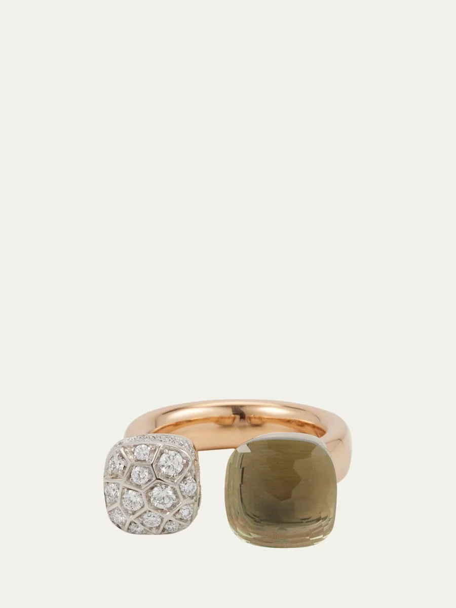 Nudo 18K Rose Gold Prasiolite and Diamond Between-The-Finger Ring