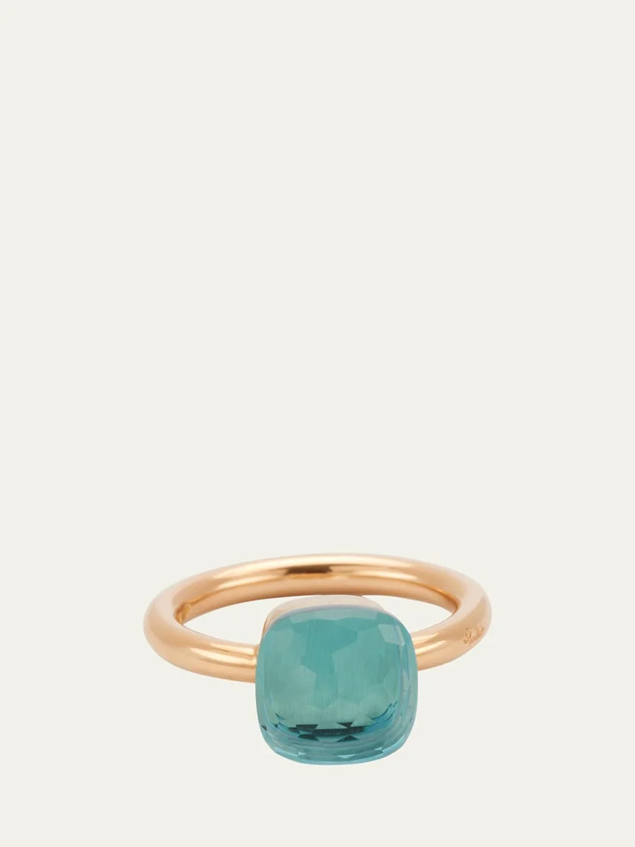 Pomellato ring from the Nudo Collection Polished 18-karat rose gold and white gold Faceted blue topaz, 9mm wide Slim band, 2.5mm wide Made in Italy Online Inquiries: BGS21_PFXZR| Store Inquiries: #4259379