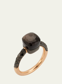 NUDO petite solitaire ring from Pomellato. Polished 18-karat rose gold and titanium. Obsidian station with 36 black diamonds. 4.30 total obsidian carat weight. 0.46 total diamond carat weight. Made in Italy. Online Inquiries: BGS21_PE6BV| Store Inquiries: #4374775