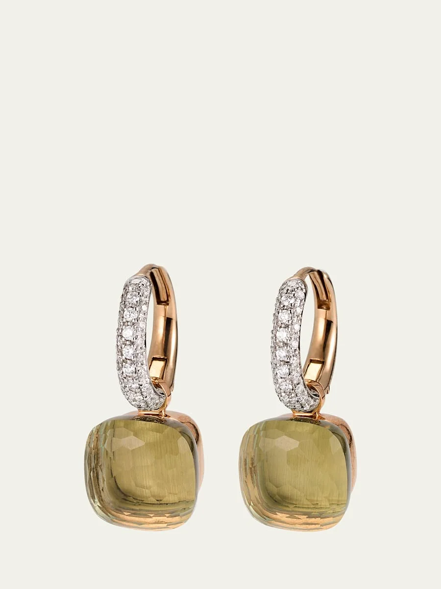 Pomellato "Nudo" earrings 18-karat rose and white gold Hoops with pave white diamonds Faceted prasiolite drop 0.5 total diamond carat weight For pierced ears Made in Italy Online Inquiries: BGS21_PGH6L| Store Inquiries: #4673195