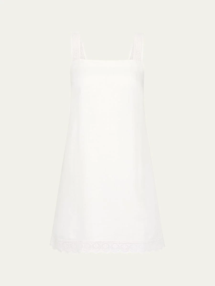 Adorned with intricate vintage-inspired scallop lace trimming, the "Grace" dress by Posse is crafted from soft, lightweight ramie Approx. 32.5"L from shoulder to hem Square neckline Sleeveless Hem falls above the knee A-line silhouette Slipover style Ramie Lining: Cotton Imported Online Inquiries: BGS21_T6E0R| Store Inquiries: #4967639
